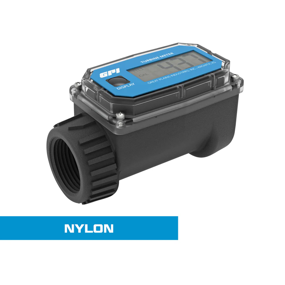 Turbine Flow Meter, Battery Powered Display, Nylon Body for Water