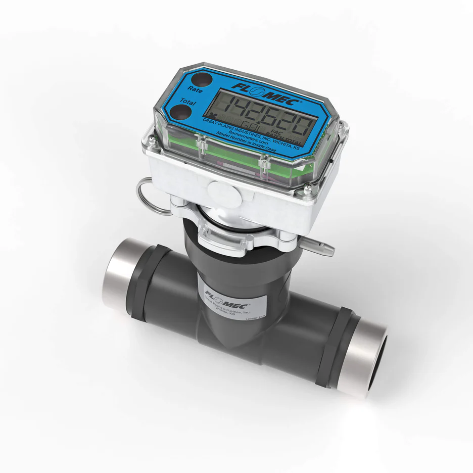 The FLOMEC TM Series turbine flow meter with Schedule 80 PVC body is designed for accurate measurement of water, groundwater, and clean fluids in industrial, agricultural, and water management applications.